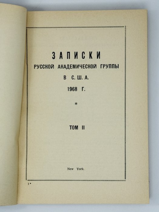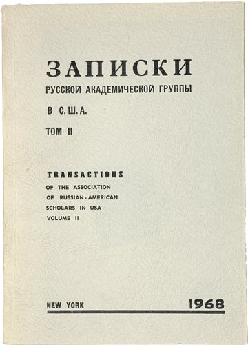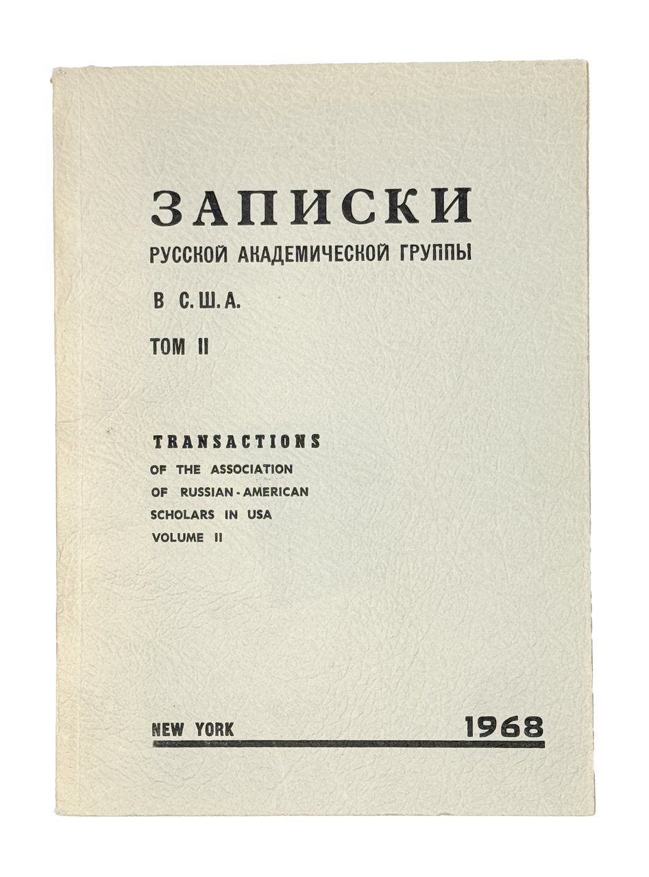 Записки русской академической группы в США. Т. 2. Нью-Йорк: Monastery Press, 1968. 271 с. В шрифтовой издательской обложке.