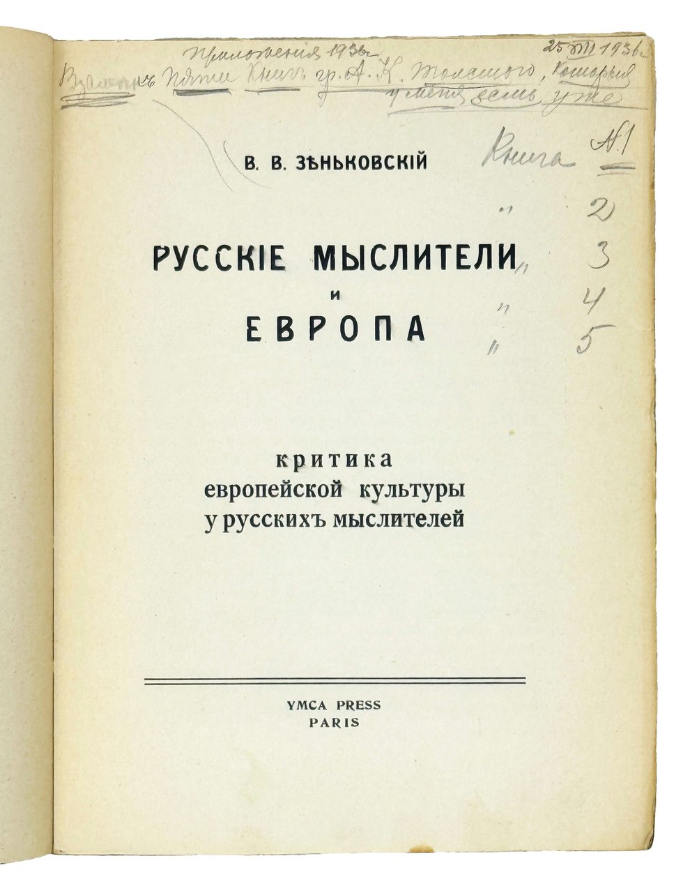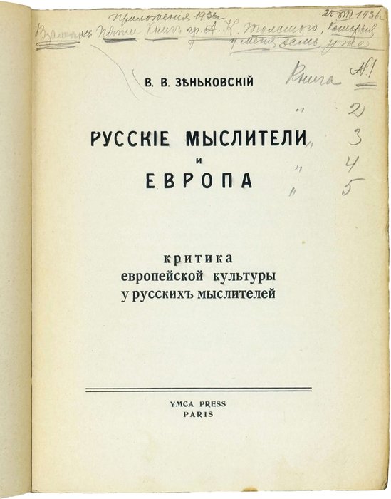 Зеньковский В.В. Русские мыслители и Европа: Критика европейской культуры у русских мыслителей. Париж: YMCA-Рress, 1955. 269 с.