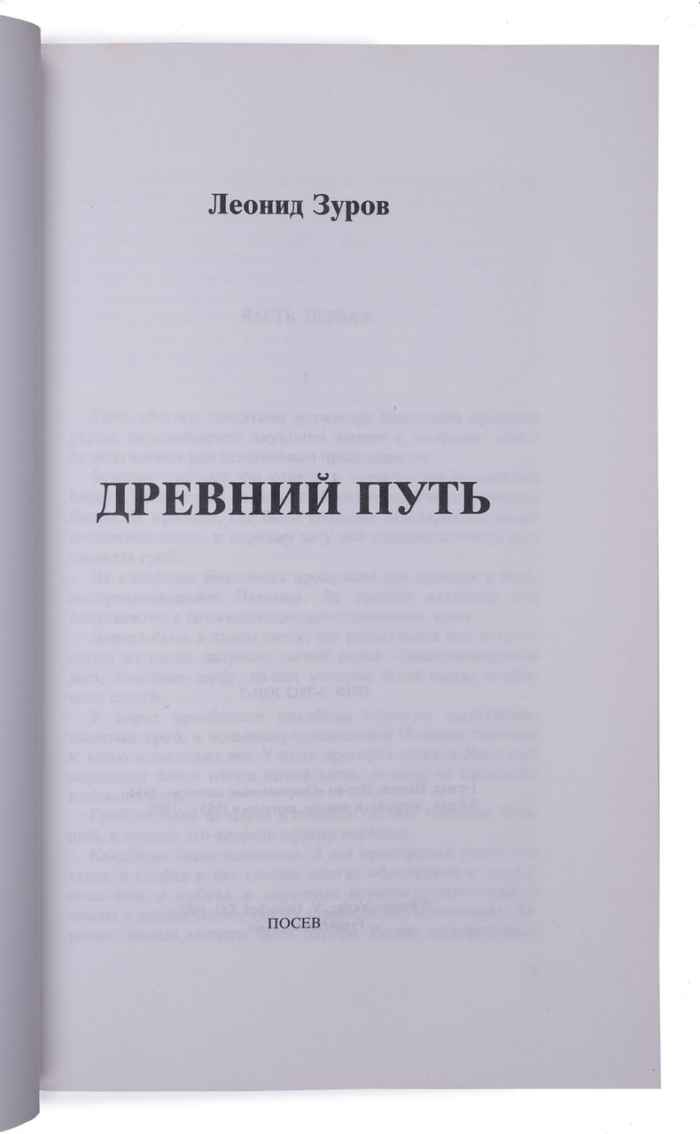 Репринтное издание романа «Древний путь» (1934) писателя, участника Гражданской войны на Северо-Западе России, секретаря и наследника архива И.А. Бунина Леонида Федоровича Зурова (1902-1971).