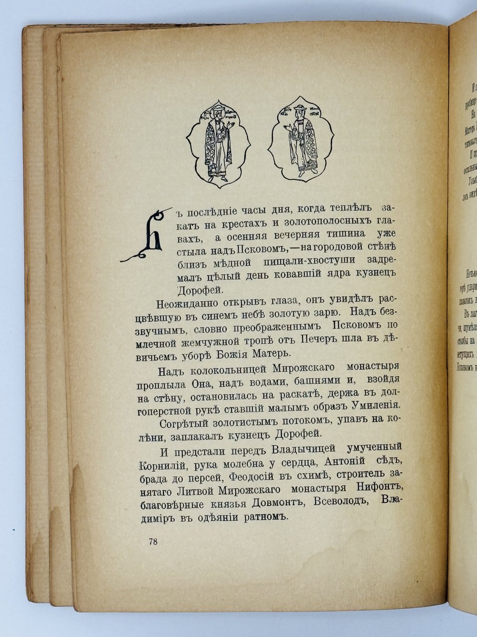 Эта книга — результат весенней работы автора в Псково-Печорском монастыре. Там, в монастырской библиотеке он смог изучить большое количество рукописей и сделать зарисовки букв, концовок, водяных знаков и кожаных тиснений, которые использовал для оформления своей книги.